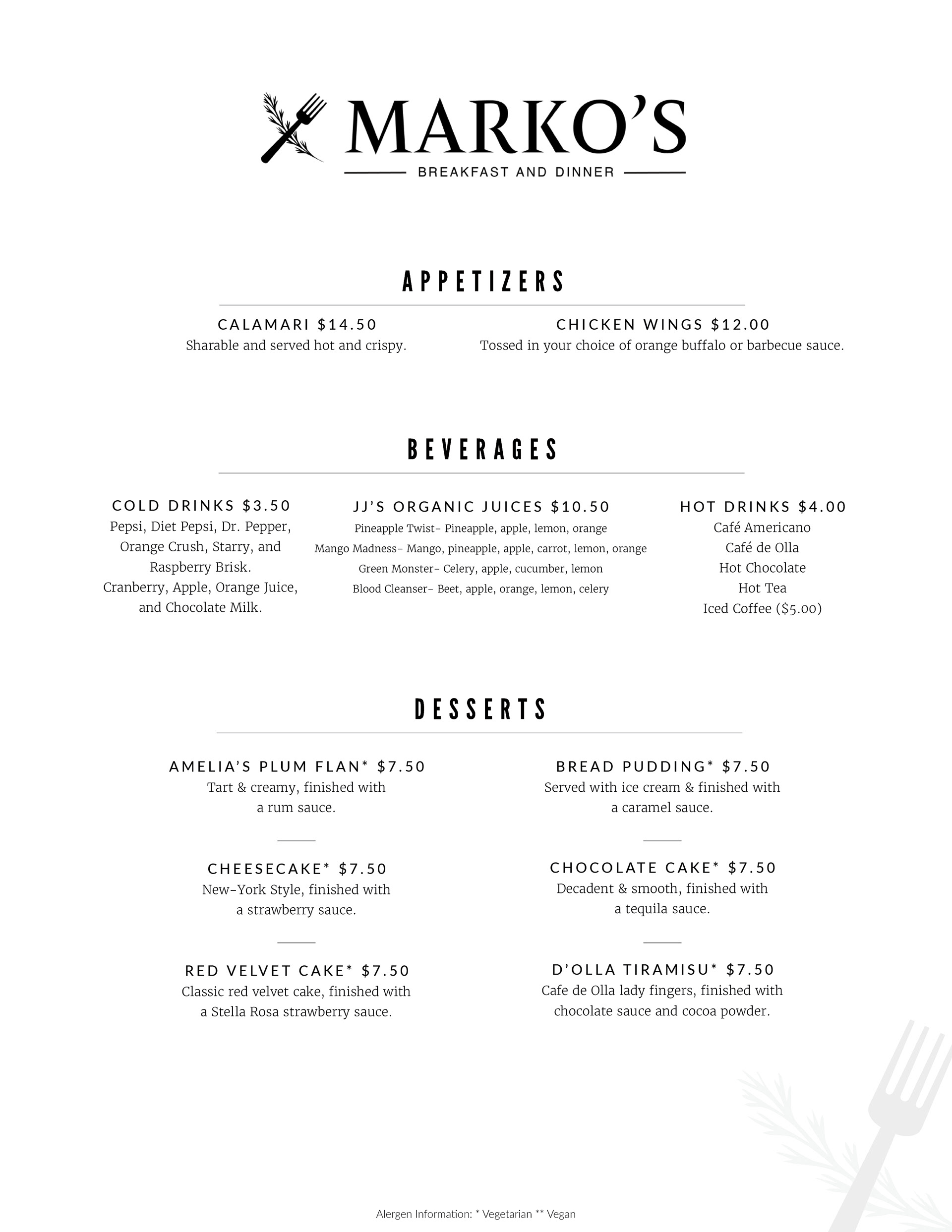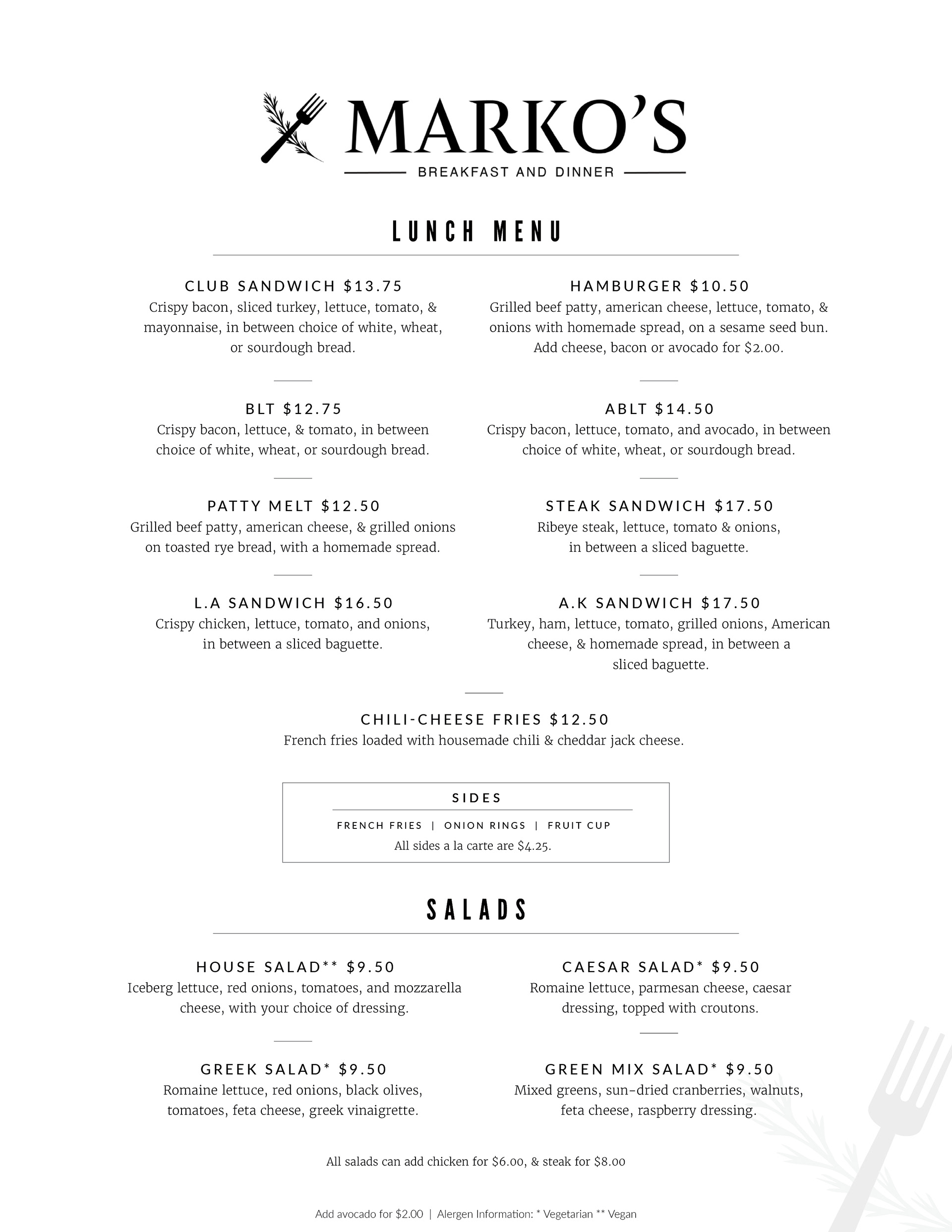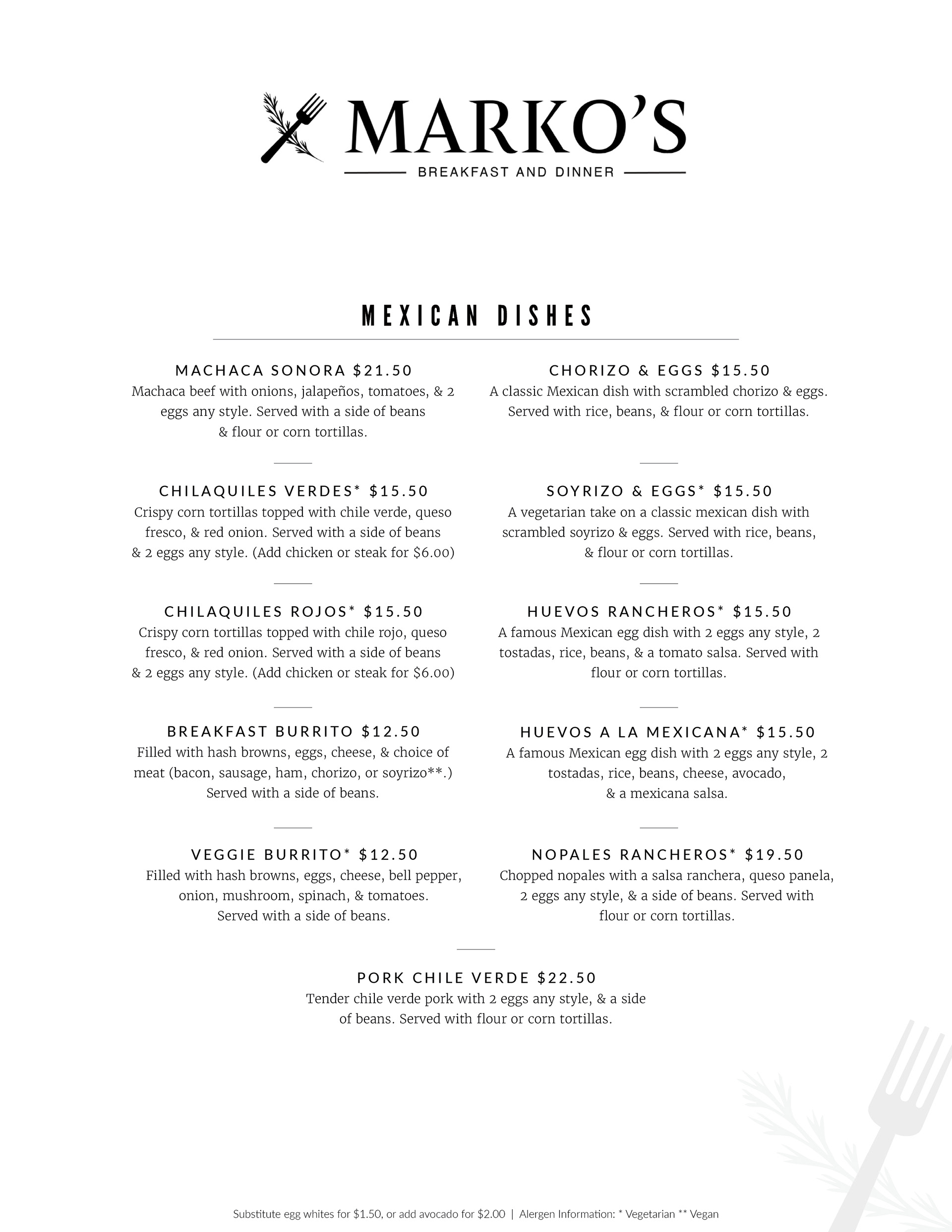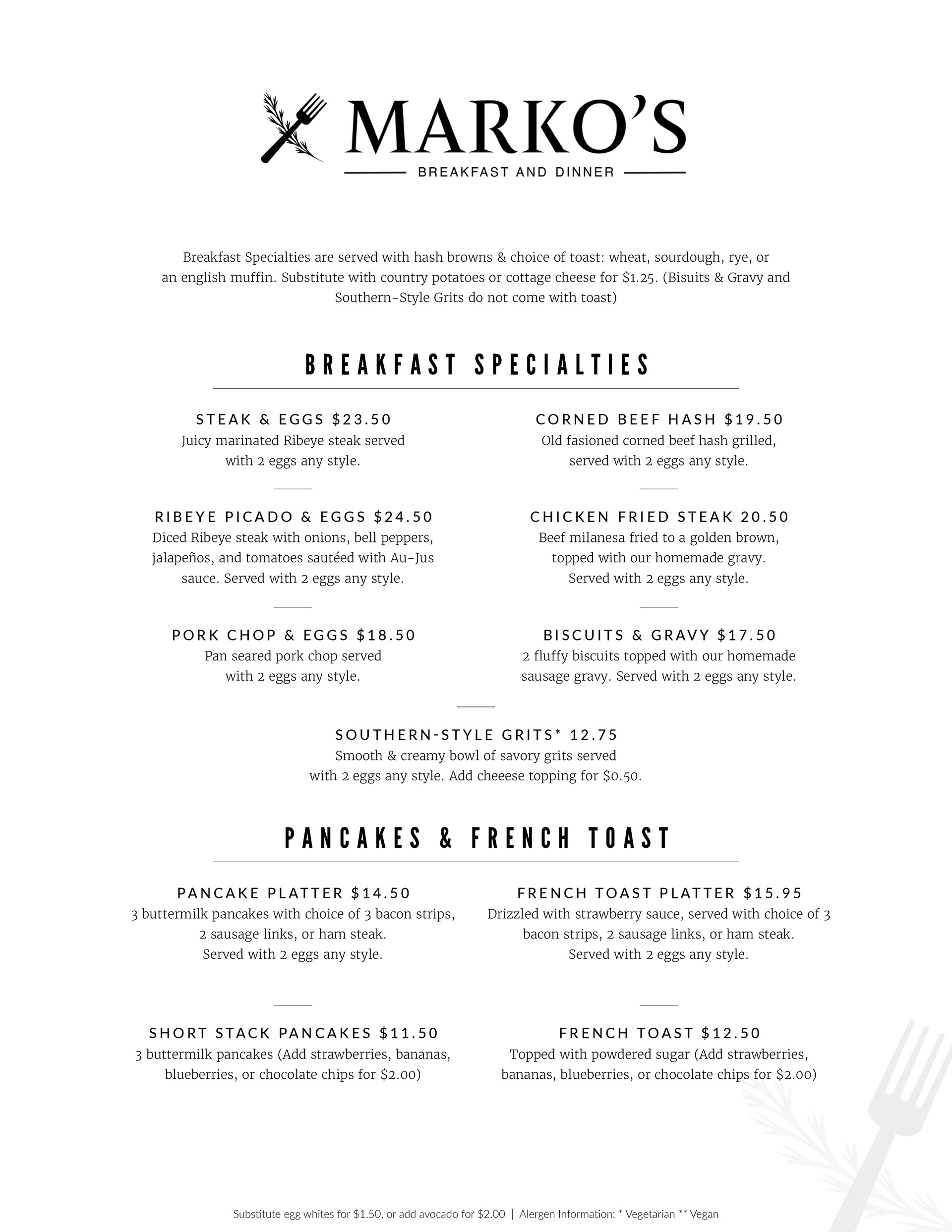 Breakfast & Lunch Menus: